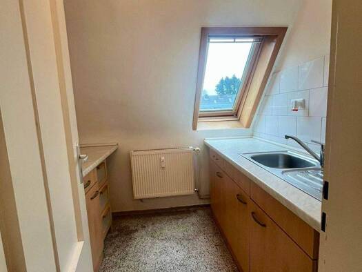 Zur Vermietung steht diese gut geschnittene 2-Zimmer-Wohnung im Dachgeschoss, die durch ihre angenehme Lichtdurchflutung und eine praktische Raumaufteilung überzeugt. Über den zentralen Flur gelangen Sie in alle Räume der Wohnung. Das großzügige Wohnzimmer bietet ausreichend Platz für eine gemütliche Wohnlandschaft sowie einen kleinen Essbereich. Große Fenster sorgen für ein freundliches und helles Wohngefühl. Das Schlafzimmer ist ruhig gelegen und gut möblierbar. Die Dachschrägen verleihen den...