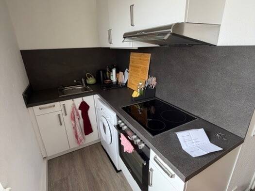 Wir suchen einen Nachmieter zu sofort. Der Fußboden ist mit einem Kork-Bodenbelag ausgelegt, in der Küche befindet sich eine Einbauküche mit Herd, Spüle und Oberschränke (kein Backofen). Das Badezimmer ist weiß gefliest mit einer Badewanne. Ein Keller ist vorhanden.