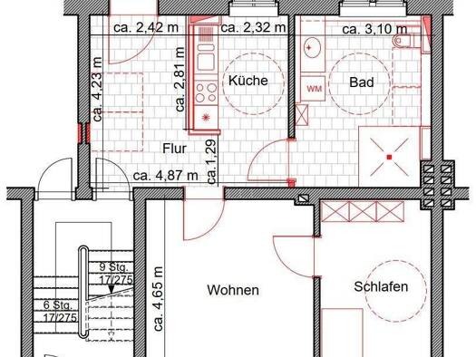 Objektbeschreibung Umfangreich saniertes Mehrfamilienwohnhaus. Großzügige, helle 4-Zimmer Maisonette-Wohnung mit Gäste WC, Wohnküche, Dachterrasse, Stpl. Raumaufteilung siehe Grundriss