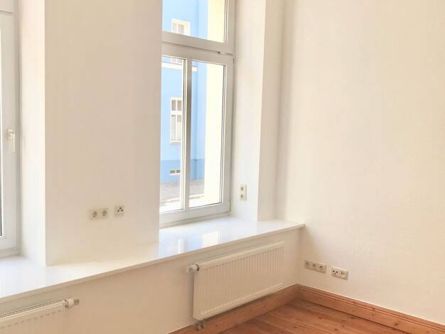 Die hier näher beschriebene Wohnung befindet sich im 1. Obergeschoss eines 4-Familienhauses unweit vom Platz der Freiheit. Die Wohnung besteht aus 2 sehr großzügigen Räumen zzgl. einer Wohnküche. Sie zeichnet sich durch helle Zimmer aus. Hervorzuheben ist auch der aufgearbeitete Parkettfußboden in den Wohnräumen. Das innenliegende Bad ist mit einer Dusche ausgestattet. Der Hinterhof weist mehrere Stellplätze aus. Diese können bei Bedarf eigenständig angemietet werden.