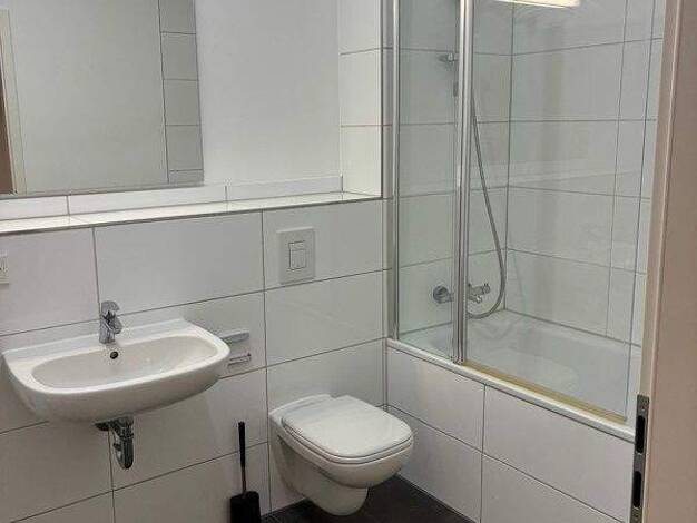 Hochwertig und modern möblierte 2-Zimmer Wohnung mit großem Balkon und tollem Blick über Stuttgart in zentraler, aber dennoch ruhiger Lage in Stuttgart Mitte. Die Wohnung befindet sich im 5. Stock mit Aufzug. Das großzügige Wohnzimmer ist unter anderem mit einem großen Ledersofa (Gästebettfunktion), einem Flat-TV, Stereoanlage, einem Sideboard, einem Bücherregal und einem Esstisch mit Stühlen eingerichtet. Im Schlafzimmer befinden sich u.a. ein großes Bett (1,60 x 2,00m), Kommode und ein Kleide...