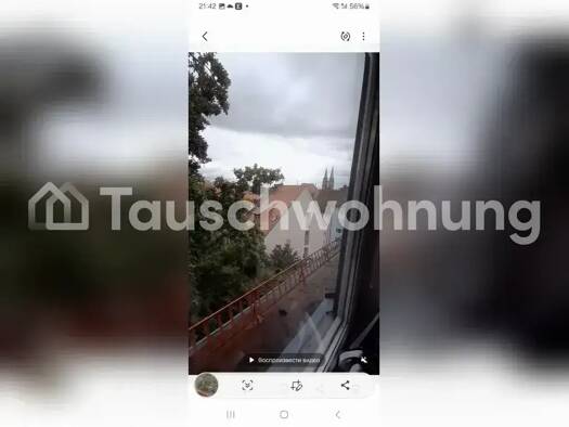 Es handelt es sich hierbei um ein Tauschangebot. (Anbieter-ID: 418660) Ich biete meine gemütliche 2-Zimmer-Wohnung in Erlangen zum Tausch an und suche eine Wohnung in Berlin (mein Studium an der FAU Erlangen/Nürnberg endet). Die Erlanger Wohnung hat ca. 55 m² und kostet ca. 660€ Warmmiete (Strom exkl.). In Berlin suche ich eine Altbauwohnung mit mindestens 2 Zimmern und einer Miete bis max. 1200€. Die Fotos stammen jetzt erstmal nur aus einem Video beim Einzug, mehr Infos und Fotos kann ich euc...