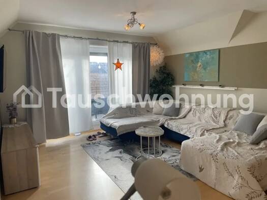 Es handelt es sich hierbei um ein Tauschangebot. (Anbieter-ID: 354597) Wir bieten unsere schöne, ca. 52 m² große Dachgeschosswohnung zum Tausch an. Die Wohnung ist hell, ruhig gelegen und freundlich geschnitten. Sie umfasst: ein großes Wohnzimmer ein Schlafzimmer eine Küche mit Essbereich ein Badezimmer Außerdem gibt es eine gemeinschaftlich nutzbare Grünfläche am Haus - perfekt zum Entspannen im Grünen. Zusätzlicher Stauraum & Komfort: Direkt neben der Wohnung befindet sich ein großer Dach...