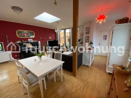 Es handelt es sich hierbei um ein Tauschangebot. (Anbieter-ID: 385115) Wunderschöne 3-Raum-Maisonette-Wohnung im Altbau sucht neue Mieter. Schöne Dachbalken in jedem Raum, 2 Bäder (2xWanne, 1xDusche),großes Wohnzimmer, Große Küche, keine Durchgangszimmer, ca 20m2 Dachterrasse, 4.Etage ohne Fahrstuhl.Hochwertige Möbel + Hochwertige schöne Küche KÖNNEN gegen eine Faire ablöse übernommenen werden. Auf der unteren Etage befinden sich der Flur, ein Großes Bad mit Wanne und Dusche, Küche mit Zugang z...
