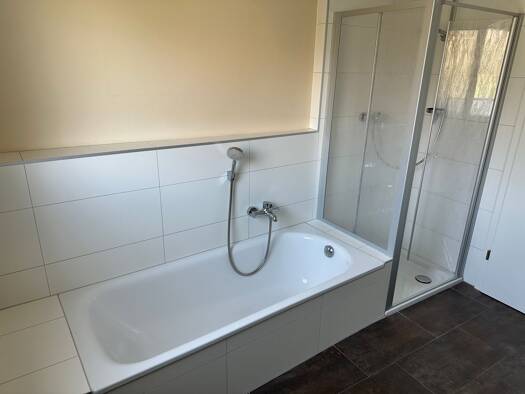 Die Wohnung befindet sich im Erdgeschoß eines gepflegten Mehrfamilienhauses mit Aufzug. Sie verfügt über eine Diele mit einem separaten Abstellraum, ein Wohn-Eßzimmer, eine komplette EBK mit Ceran-Kochfeld, Backofen, Kühlschrank und Geschirrspülmaschine, ein Bad mit Wanne und Waschmaschinenanschluß, ein separates Gäste-WC und ein Schlafzimmer. Im Wohn- und Schlafbereich sowie in der Diele befindet sich Laminatboden, in den übrigen Räumen Fliesen. Bad, Gäste-WC und Küche haben Fenster. Vom Wohnz...