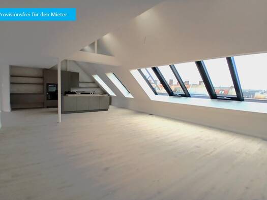 Die 54 qm große Studio-Wohnung mit Terrasse liegt im Innenhof in Südausrichtung. Der Schlaf- sowie der Küchenbereich befinden sich auf einer 15 cm hohen Empore. Fußbodenheizung, hochwertiges Eichenpa...