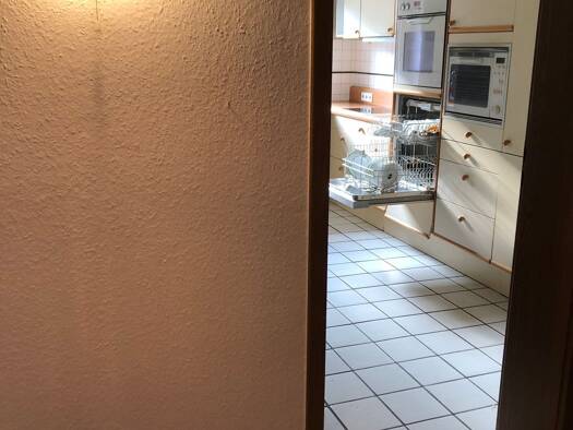Die Wohnung ist gross und geräumig. Es gibt eine Terrasse und einen Stellplatz.