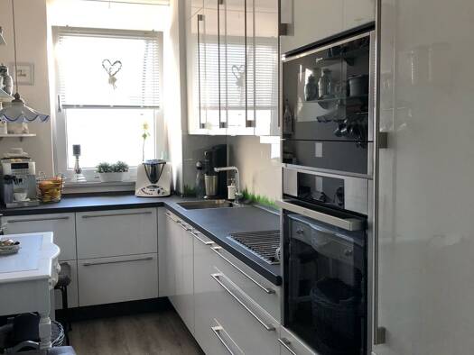 Nachmieter gesucht!!! Diese außergewöhnlich schöne, helle u. offene Dachterrassen-Wohnung liegt in einem sehr gepflegten, ruhigen MFH mit 11 Wohneinheiten, verteilt auf EG, 1,2,3. Etage. Die Wohnung, 3. Etage, betritt man durch ein gepflegtes Treppenhaus mit hochwertigen Marmortreppen u. Wänden. Von dem großzügigen Flur (8,00 m²) gelangt man in den großen, hellen und offenen Wohnbereich (23,86 m²) mit integriertem Essbereich. Die große Süd/West Terrasse mit Balkon (ca. 26 m²) ist vom Wohnzimmer...
