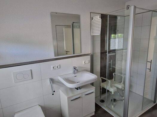 Helle 3 Zimmernwohnung im EG. Die Wohnung verfügt über ein Wohnzimmer mit integriertem offenen Küchenbereich. Vom Wohnzimmer haben Sie Zugang zur Südterrasse. Bad mit Tageslichtfenster und barrierear...