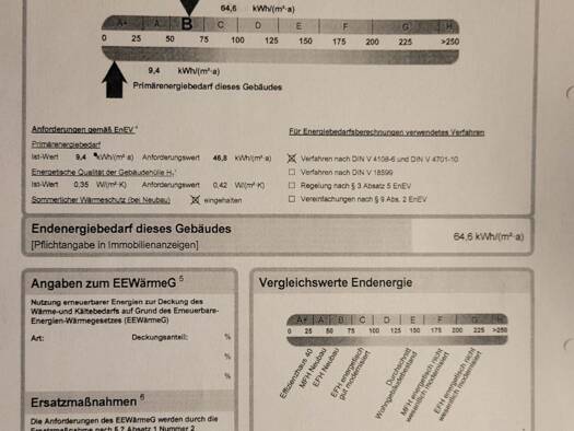 Die Wohnungen wurden nach der im Jahr 2012 aktuellen Anforderungen an die Energieeinsparverordnung erstellt. Dies beinhaltet eine hochwertige Dämmung der Außenfassade in Form von 12 cm starkem Wärmed...