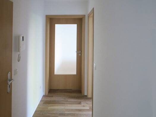 Wir laden Sie in unsere Musterwohnung ein und zeigen Ihnen, wie Ihre neue Wohnung im Zentrum aussehen könnte: Sie treten in den Flur mit Gegensprechanlage, der durch die weißen Wände und Türen hell u...