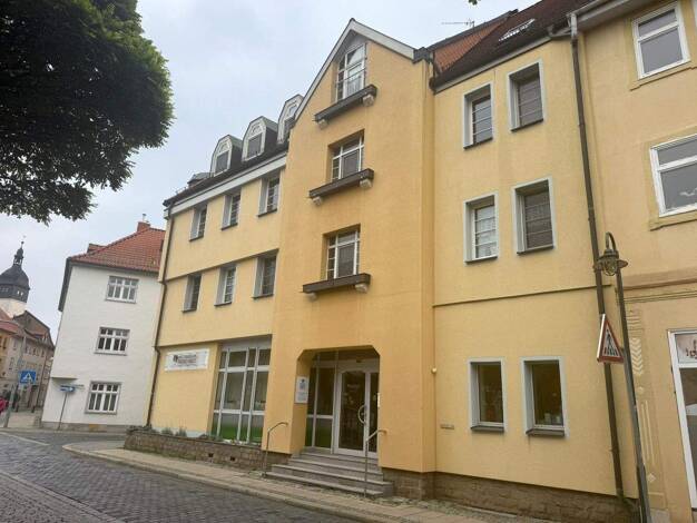 Objektbeschreibung Das Objekt befindet sich zentral und unweit des Stadtzentrums von Bad Langensalza. Wohnungsbeschreibung Die Wohnung befindet sich im 1. OG des Vorderhauses über der großen Gewerbee...