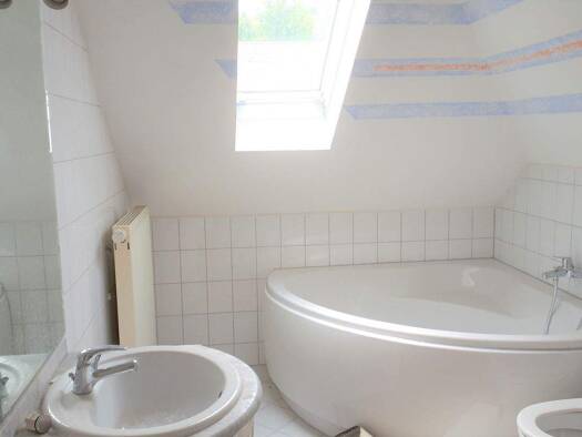 Die angebotene Wohnung befindet sich im Obergeschoss eines gepflegten Zweifamilienhauses und verfügt über ca. 120 m² Wohnfläche. Sie bietet vier gut geschnittene Zimmer, ein Tageslichtbad mit Dusche ...