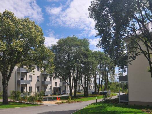 Die Wohnung befindet im ersten Obergeschoß eines Mehrfamilienhauses mit großem Anwohnerparkplatz. Im Eingang befinden sich ingesamt sechs Wohnungen Das Gebäude wurde 1995 gebaut. Die Wohnanlage befin...