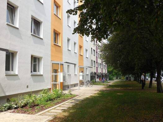 Das Mehrfamilienhaus liegt im Norden von Erfurt. Der 5- geschossige Plattenbau wurde erst im Jahr 2013 komplett saniert und mit einer Wärmedämmfassade versehen. Wohnberechtigungsschein erforderlich