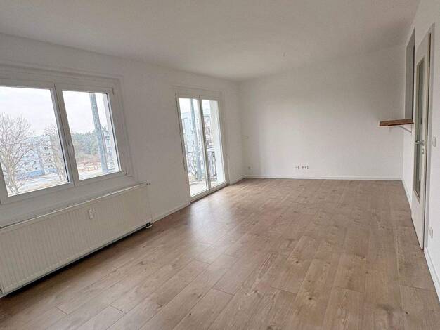 Großzügige Dreizimmerwohnung in der historischen Altstadt Zossen. Die Wohnung verfügt über einen zentralen Raum von dem das Gäste - WC abgeht, ein Schlafzimmer, sowie über einige Stufen ein weiteres Schlafzimmer und von dort das Badezimmer mit WC, Dusche und Whirlpool. Sie ist mit Raufasertapeten ausgestattet Vinyl- Boden im Dielendesign, einer Küche mit Herd und Spüle und einem Duschbad. Das zentrale Zimmer ist mit Mosaikparketmuster - PVC versehen, das Schlafzimmer hat abgezogene Dielen, das ...