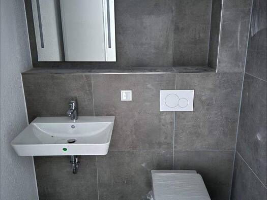 Diese moderne Wohnung zur Miete befindet sich im 1. Obergeschoss und bietet ca. 90 Quadratmeter Wohnfläche. Sie verfügt über ein geräumiges Schlafzimmer und ein Gästezimmer, das direkten Zugang zur L...