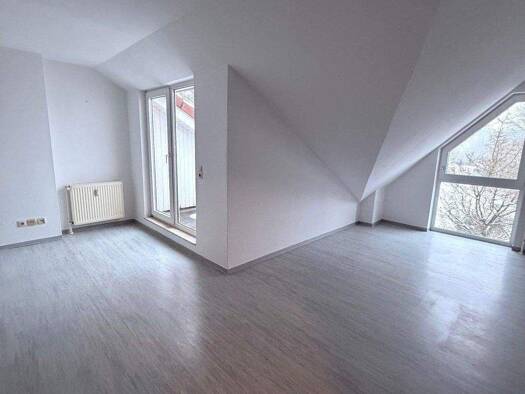 Diese ansprechende Dachgeschosswohnung in einem Mehrfamilienhaus vereint Gemütlichkeit und Funktionalität. Nach dem Betreten des Eingangsbereichs erreichen Sie einen großzügigen Flur, der die Anschlü...