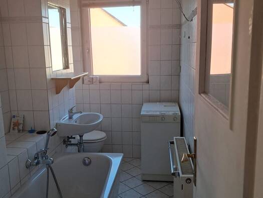 Die schöne 3 Zimmerwohnung ist im 2 Obergeschoss, Sie hat eine großen Küche (Mit EBK) und ein Tageslichtbad mit Wanne und Dusche.