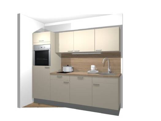 privat: Schlafen und Arbeiten gemeinschaftlich: Küche – Essen, Badezimmer mit Tageslicht, sep. WC, Balkon AUSSTATTUNG Vinylboden in Eichenparkettoptik. Kunststofffenster, Türen, und Sanitär mit Duschelement in weiß. Einbauküche in der Farbe „Cashmere“ mit allen Geräten. Tageslichtbadezimmer mit Dusche. Glattputz, möbliert mit Einzelbett, Schreibtisch, Stuhl, Regale, Sitzsack, praktische Schrankelemente.