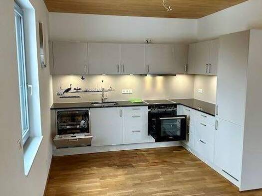 Virtueller Rundgang: https://my.matterport.com/show/?m=eb2SPPHY2AX Diese moderne 2-Zimmer-Wohnung im Dachgeschoss eines neu erbauten, dreistöckigen Mehrfamilienhauses, bietet Ihnen auf rund 58 m² Wohnfläche eine durchdachte Raumaufteilung und den Komfort eines Erstbezugs - perfekt für Singles oder ein Paar. Das Herzstück der Wohnung ist das großzügige Wohn- und Esszimmer am Ende des geräumigen Flures. Große Fenster bringen viel Licht in den Raum hinein und machen ihn hell und freundlich. Ein an...