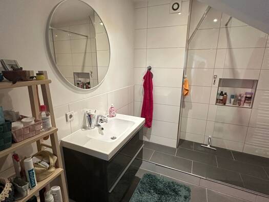 Helles, freundlich möbliertes WG-Zimmer in einer 4-Zimmer-Wohnung im 1. OG eines Zweifamilienhauses im Norden Nürnbergs/Heroldsberg. Das Zimmer verfügt über ein Einzelbett, Schreibtisch mit Stuhl, ein Waschbecken und einen Kleiderschrank. Bettwäsche wird vom Vermieter kostenlos gestellt. Die voll eingerichtete, gemeinsame Wohnküche ist ausgestattet mit allen Utensilien des täglichen Bedarfs wie Geschirr, Geschirrspüler, Herd, Mikrowelle etc. Hier befindet sich ein Fernseher sowie ein Radio zur ...