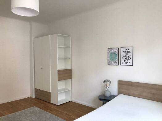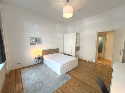 Deutsch: Diese frisch sanierte 6-Zimmer-WG bietet modernen Wohnkomfort in einem ruhigen und gepflegten Umfeld. Die Wohnung ist ideal für alle, die Wert auf ein hochwertiges Wohnambiente und eine harmonische WG-Gemeinschaft legen. Das helle und modern eingerichtete Zimmer bietet viel Platz zum Wohlfühlen. Es ist vollständig möbliert – inklusive Bett mit Stauraum, Kleiderschrank, Schreibtisch und zusätzlicher Ablagefläche. Durch das große Fenster wirkt der Raum freundlich und einladend, ideal zu...