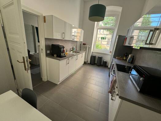 Ich suche einen Nachmieter, weil ich mit meiner Partnerin zusammenziehe und eine größere Wohnung gefunden habe. Das WG-Zimmer soll zum 01.04.2026 übernommen werden. Das Zimmer ist 22,96 qm groß und befindet sich in einem schönen Altbau mit hohen Decken. Ein großes Bett, Kleiderschrank, Schreibtisch sind vorhanden. Vom Nachmieter übernommen wird eine Ikea Kommode für 150 Euro und ein Rollcontainer für 10 Euro. Das Fenster zeigt in den Hinterhof, daher ist es sehr ruhig trotz zentraler Lage der W...