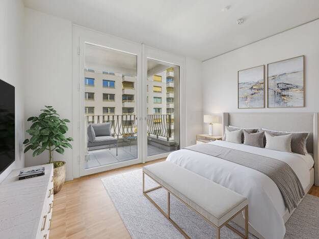 Wohnen im Crown II: Das Crown II vereint urbane Eleganz mit hochwertiger Architektur und durchdachtem Design - ein exklusives Zuhause im Herzen Berlins. Dein Apartment: Diese großzügige 3-Zimmer-Wohnung bietet viel Raum zum Leben und Entfalten. Der offene Flur führt zu einem eleganten Duschbad und einem praktischen Hauswirtschaftsraum. Das Schlafzimmer verfügt über ein eigenes Bad en Suite für maximale Privatsphäre, während das zweite Schlafzimmer mit einem Balkon zusätzlichen Komfort bietet. D...