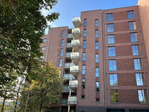 Bei diesem Objekt sind zwei Mehrfamilienhäuser, die in einem Baukörper zusammengefasst sind, entstanden. Auf insgesamt acht Etagen plus Untergeschoss bieten die Häuser eine Gesamtfläche von etwas über 5.670 Quadratmetern. Darin finden insgesamt 49 Wohnungen Platz. Diese verfügen über zwei, drei oder vier Zimmer mit Wohnflächen zwischen 49 und 91 Quadratmetern. Alle Wohnungen sind barrierearm gestaltet und verfügen über einen separaten Abstellraum im Keller. Im Erdgeschoss sowie Untergeschoss be...