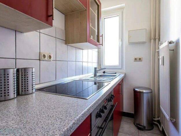 Im beliebten Frankfurter Westend befindet sich dieses helle 1-Zimmer-Apartment. Es ist in einem ruhigen Mehrfamilienhaus untergebracht und bietet Platz für 1 oder 2 Personen. Es liegt im 3. Obergeschoss ohne Aufzug. Das große Zimmer des Apartments ist neu und modern eingerichtet mit einem 1,40m Boxspringbett mit Nachttisch, einem Doppelsofa, offenem Kleiderschrank, einem Schreibtisch mit Stuhl und Lampe, sowie einem Fernseher an der Wand. An das große Zimmer angrenzend ist ein kleiner Balkon. D...