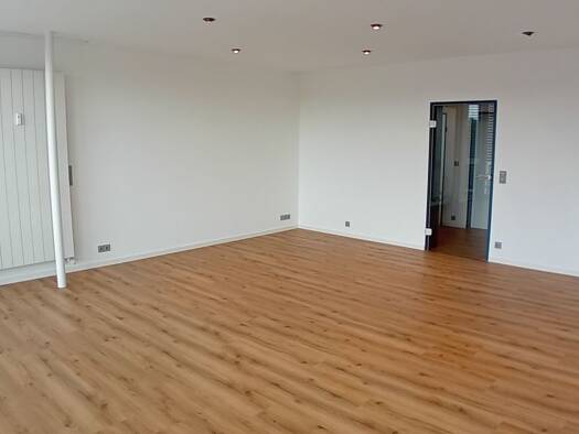 Diese großzügige Erdgeschosswohnung in einem mehrstöckigen Gebäude bietet eine Wohnfläche von 94,35 m². Die Wohnung verfügt über insgesamt 4 Zimmer, darunter 2 Schlafzimmer und 1 Badezimmer. Der helle Holzboden und die großen Fenster sorgen für eine angenehme Atmosphäre in allen Räumen. Die Wohnung liegt im Erdgeschoss und besticht durch eine moderne, schlichte Gestaltung mit weiß gestrichenen Wänden und viel Tageslicht.