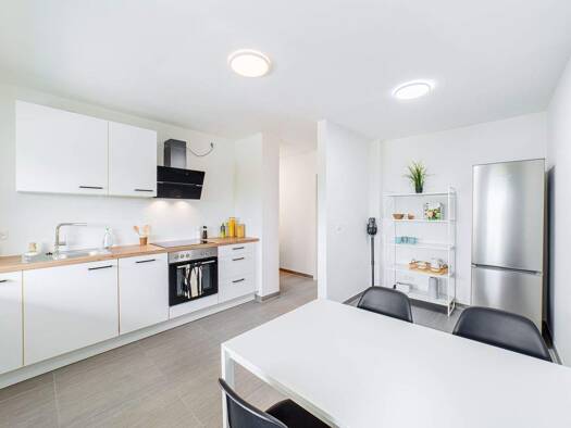 Inklusive aller Nebenkosten, inkl. WLAN, inkl. 7% MWSt., moderne Komplettausstattung, chicer Vinylboden, Waschmaschine und Trockner im Keller, Aufzug, Küche und Bad zur Mitbenutzung, maximale Mietzei...