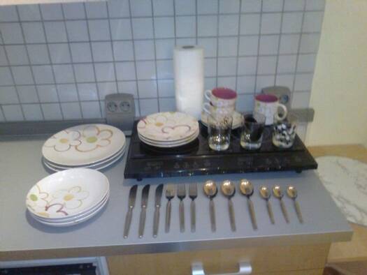 3-Zimmer (Schlaf-, Wohn- und drittes Zimmer), Küche, Bad, Flur, Kellerabteil. Die EBK kann vom Vormieter gegen Ablöse übernommen werden - VHB 2.400.- € EBK mit E-Herd, Dunstabzugshaube, Backofen, Spüle, Spülmaschine, Kühlschrank mit Gefrierfunktion, div. Ober- und Unterschränke, Waschmaschine