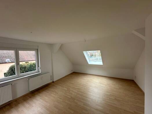 Objektbeschreibung Die geräumige Wohnung ist vollständig renoviert und im Dachgeschoss (2.OG) gelegen. Sie verfügt über drei für eine Wohnungsgemeinschaft geeignete Zimmer, ein Bad und eine Küche. Ein Parkplatz kann auf dem Grundstück angemietet werden. Raumaufteilung Die beiden Badezimmer und Küche, sowie der Küchenspiegel sind gefliest, ansonsten verfügt die Wohnung über Vinylbodenbelag oder Laminat.