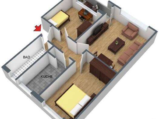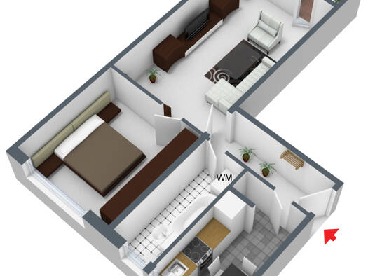 Raumaufteilung Die Wohnung verfügt über eine moderne Einbauküche, ein helles Wohnzimmer, ein ruhiges Schlafzimmer sowie ein Badezimmer mit Dusche. Die Räume sind gut geschnitten und lichtdurchflutet....