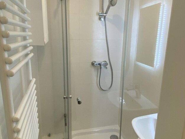 Dieses helle 1-Zimmer-Appartement liegt zentral und dennoch ruhig. Über einen kleinen Eingangsbereich mit Platz für eine Garderobe gelangt man in das weiß geflieste Bad mit Dusche und in den Wohnbere...