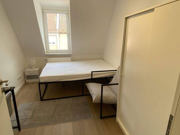 Helles, neu möbliertes und freundliches Zimmer in einer frisch renovierten und hochwertig ausgestatteten 5er-WG im Dachgeschoss. Folgende Zimmergröße steht aktuell zur Verfügung (incl. Betriebskosten...