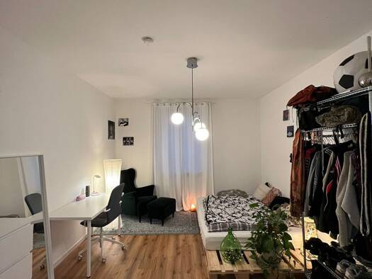 Für das Wohnheimzimmer im 522 Apartunities suche ich zum 1.4.26 eine/n Nachmieter/in. Das Zimmer kann ausschließlich an immatrikulierte Student/innen vermietet werden. Es ist möbliert und somit sofor...