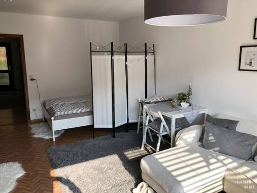 Möbliertes Apartment für 1 Person in Bahnhofsnähe mit Waschmaschine, Geschirr, Töpfe, TV, Das Apartment befindet sich im 2. OG. Die ca. 25 m² große 1-Zimmer-Wohnung eignet sich durch Ihre hervorragen...