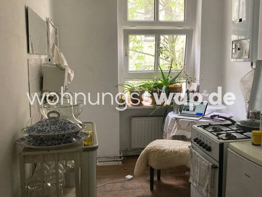 Ich tausche meine feine kleine Altbauwohnung in Mitte in diesem Sommer gegen eine familienfreundliche im äussersten Südwesten Berlins. Sie liegt im 3. Stock eines ruhigen Hinterhauses, und besteht aus Flur, Küche mit Kammer, Toilettenzimmer mit Waschbecken, und großem Raum mit schönem Kachelofen. In der Küche stehtGasherd, Spüle mit Schrank, ein Kühlschrank und eine Stelldusche, in der Kammer ist Platz für eine Waschmaschine. Sämtliche Zimmer haben hohe, teils stuckverzierte Decken und durchlau...