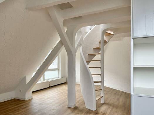 Diese hochwertig renovierte Dachgeschosswohnung in der 4. Etage eines gepflegten Mehrfamilienhauses in der Scharnhorststraße überzeugt mit modernem Wohnkomfort und einem offenen, loftartigen Wohnkonzept. Auf ca. 51 m² Wohnfläche, verteilt über zwei Etagen, bietet sie ein stilvolles Zuhause für alle, die urbanes Wohnen schätzen. Der untere Bereich der Wohnung bildet den offenen Wohn- und Küchenbereich. Die großzügige Gestaltung ermöglicht eine harmonische Verbindung von Kochen, Essen und Wohnen....