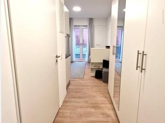 Das Studioapartment befindet sich im dritten Obergeschoss eines Mehrfamilienhaus aus den 1950er Jahren, welches mit dem Fahrstuhl erreichbar ist. Es verfügt über ein eigenes modernes Badezimmer, eine komplett ausgestattete Pantryküche und einem zum Konzerthaus gerichteten Balkon. Die Nebenkosten beinhalten unter anderem Heizung, Warmwasser und Internet. Lediglich Strom ist nicht enthalten und wird genau nach Verbrauch abgerechnet.