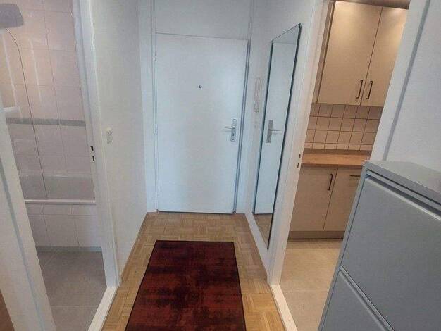 Dieses frisch sanierte 1-Zimmer-Apartment besticht durch seine moderne Ausstattung und stilvolle Möblierung. Der offene Wohnbereich bietet ausreichend Platz zum Wohnen und Arbeiten. Große Fenster lassen viel Tageslicht herein und öffnen den Blick auf den Westbalkon, von dem Sie einen beeindruckenden Panoramablick genießen können - perfekt für entspannte Abende. Die Küche ist hochwertig ausgestattet, das Bad modern gestaltet. Das Apartment eignet sich ideal für Singles oder Pendler, die urbanes ...