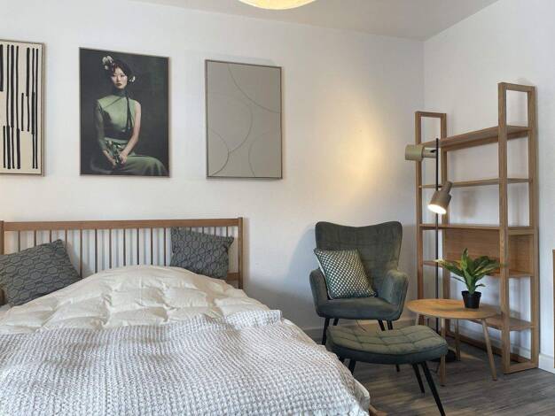 Helle, freundliche und großzügig geschnittene Räume mit jeweils 24 m2. 2025 neu hergerichtet und möbliert: Schrank, Sofabett (mit Bettkasten), Couchtischchen; elektr. höhenverstellbarer Schreibtisch,...
