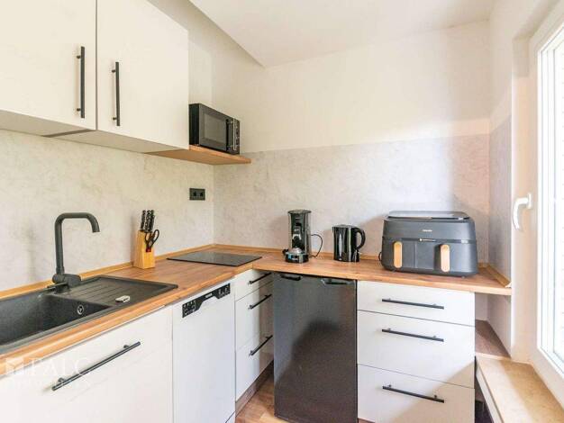 Diese möblierte Wohnung bietet eine komfortable und durchdachte Wohnlösung für längere Aufenthalte. Die voll ausgestattete Küche verfügt über Cerankochfeld, Mikrowelle, Kühlschrank, Geschirrspüler so...