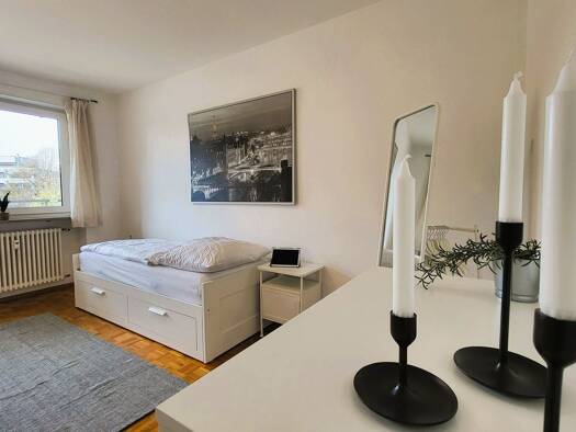 Diese möblierte Wohnung bietet eine komfortable und durchdachte Wohnlösung für längere Aufenthalte. Die voll ausgestattete Küche verfügt über Cerankochfeld, Mikrowelle, Kühlschrank, Geschirrspüler so...