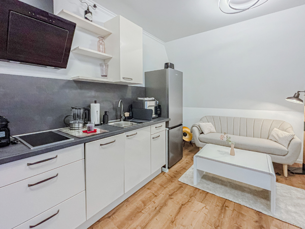 Dieses charmante Apartment überzeugt durch sein durchdachtes Raumkonzept, modernes Design und einen offenen, lichtdurchfluteten Wohncharakter. Es verbindet stilvolle Architektur mit funktionaler Eleganz, ideal für alle, die urbanes Wohnen in seiner schönsten Form genießen möchten. Der Wohn- und Schlafbereich ist harmonisch gestaltet und öffnet sich zu einem sonnigen Balkon, der einen wunderbaren Ausblick über die Stadt bietet. Große Fensterflächen lassen viel Tageslicht herein und schaffen eine...