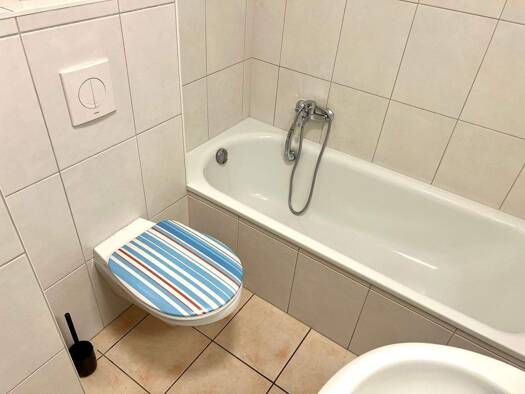 Die Wohnung ist neuwertig, gepflegt und sehr sauber. Sie ist geschmackvoll, gemütlich und modern eingerichtet. Ohne Berücksichtigung der schrägen Wände ca. 35 qm (Wohn/Schlafraum 19 qm, Küche 8,6 qm, Bad 3,4 qm,Flur 2,9,qm, Toi. 1,2 qm). Zur Ausstattung gehören: E-Herd, Kaffeemaschine, Wasserkocher, Toaster. Ferner vorhanden sind Bügeleisen, Bügelbrett, Waschmaschine und Trockner separat im Wirtschaftsraum, Staubsauger, WLAN inkl. Internet. Separater EIngang im Einfamilienhaus im 1.Stock