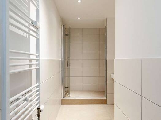 Die Wohnung hat einen großzügig geschnittenen Wohn-Schlafraum und einen Küchenbereich. Das Badezimmer verfügt über eine Dusche.